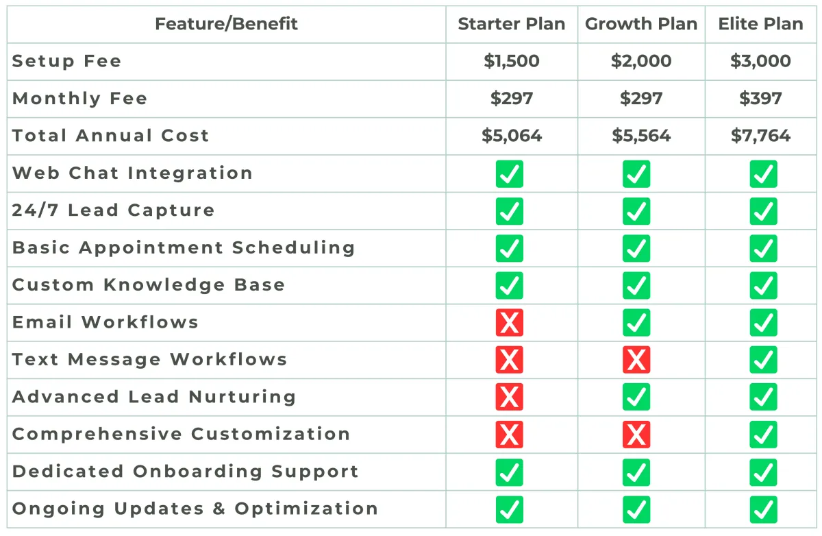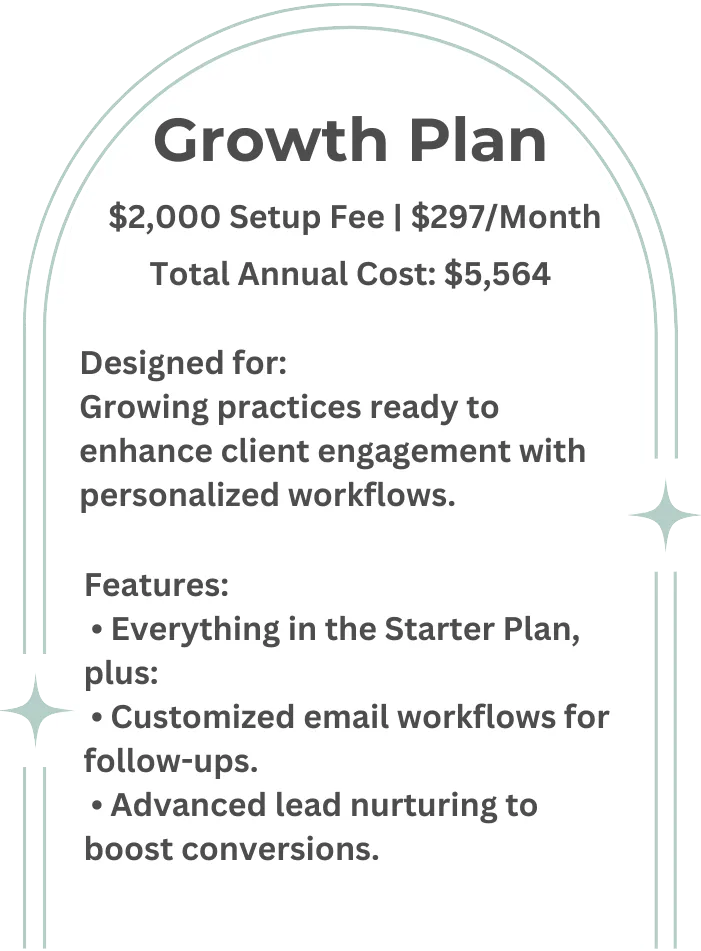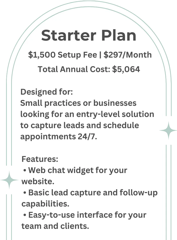 • Starter Plan: Great for practices that need a simple, reliable web chat for lead capture and basic booking.