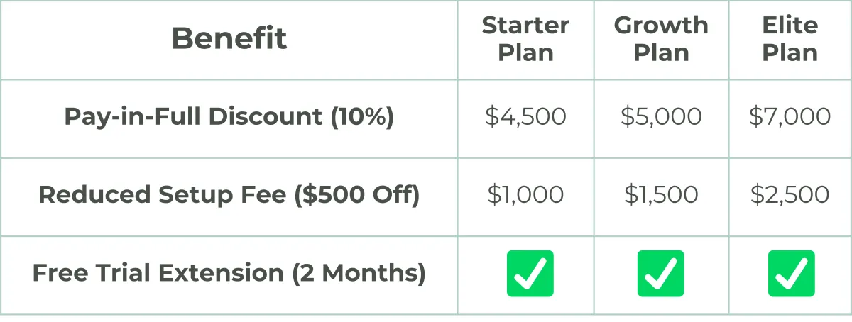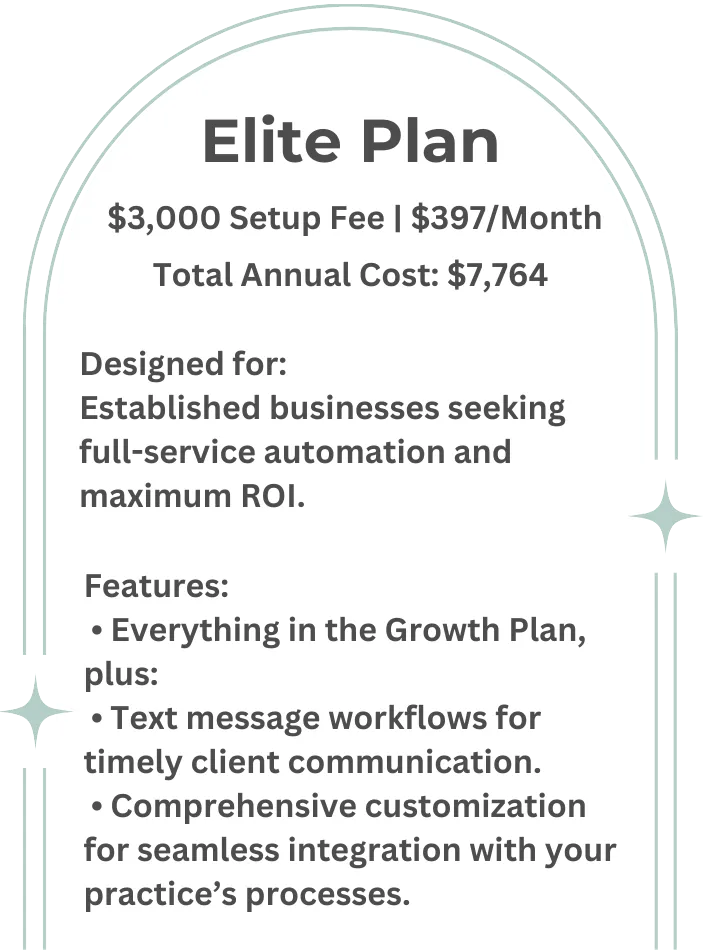 • Elite Plan: The ultimate solution for practices that require advanced automation, including text messaging and tailored integrations.