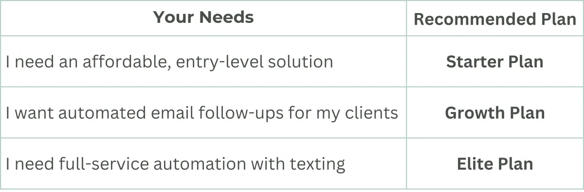 • Growth Plan: Ideal for businesses that want to nurture client relationships with personalized email workflows.